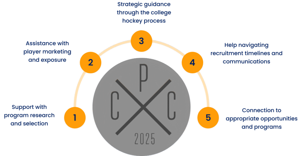 When you become our client, our network becomes your competitive advantage. The college coach who needs to fill a specific position, the junior team looking for your skill set, the scout evaluating talent at your level—these are people we know personally and who trust our judgment about player potential. We don't just send your information into the void; we make strategic introductions, provide personal recommendations, and leverage our relationships to create opportunities that might never appear through traditional channels. Whether you're seeking exposure, advancement, or simply wanting to ensure the right people know about your capabilities, our network provides access to decision-makers and influencers who can directly impact your hockey future.